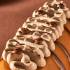 Le biscuit brownie à la noisette, dense et moelleux, se marie à un croustillant chocolat et à un streusel délicatement parfumé. Le tout est complété par un crémeux noisette fondant et un cœur de praliné noisette pur. L’ensemble est enrobé d’une mousse chocolat au lait soyeuse, ponctuée d’une ganache montée au chocolat pour une expérience riche et régressive.